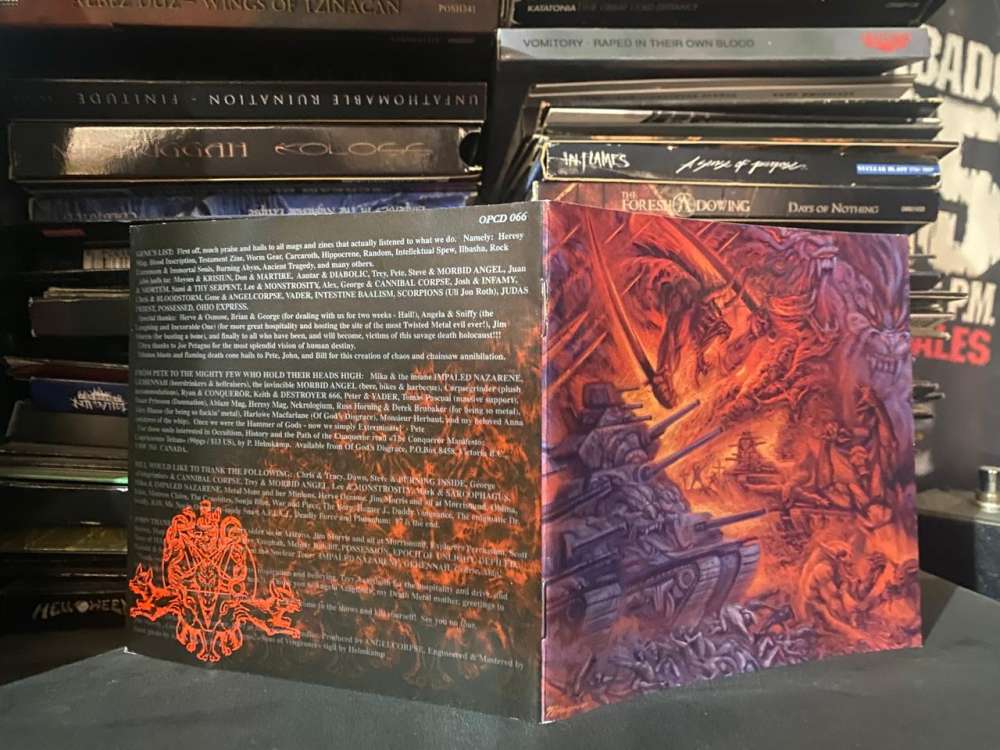 Desde que todo empieza con “Christhammer” y termina con “Sons of Vengeance”, tenemos violencia en todos los minutos, el disco no baja de intensidad y te deja con la cara molida en todo sentido, donde canciones como “Into the Storm of Steel” o “Phallelujah” automáticamente son de aquellas que se te quedan en la cabeza y te dicen que solo esperes violencia, salvajismo y ese lado oscuro que solo ellos pudieron hacer en todo sentido, donde el trabajo de John Longstreth es insano y si lo conoce de su otra banda Origin, no reconocerás su tipo de ejecución, porque se siente que es otro músico en estudio, eso es lo que hasta el día siempre sorprenderá, porque encuentras a alguien influenciado por una idea mucho más salvaje o violento, luego Gene Palubicki creando riffs violentos y acelerados que tiene ese concepto agresivo dentro de la música, donde la voz de Pete Helmkamp siempre será un detalle alocado en la música, porque ese lado de bruja loca cantándote en tu costado es de lo mejor, sientes que todo se hace mucho más visceral y se hace violento en cada canción, y ese lado blacker le da un sentido frenético a la música, algo que es parte del sello personal de Angelcorpse en muchas bandas de nuestros tiempos y la escena polaca capto muy bien en bandas no como Behemoth o Hate, que son más inclinadas a otros tipo de Death / Black Metal.
