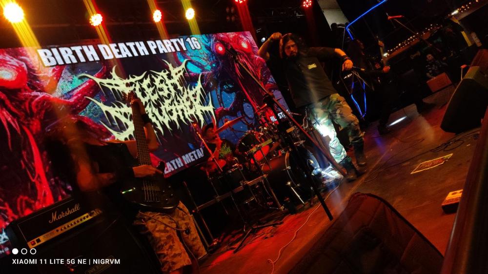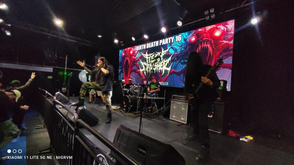 Primeros llamados a las tablas Flesh Crusher, presentando dentro de su set varios temas de lo que será su producción del 2023 lanzada por el sello mexicano Satanic Porno Records. Más que una propuesta “Death Metal”, sonidos más allegados al gore, decantando su líricas en la depravación humana, hablando inclusive de incesto y autolesión. Influencias de esta agrupación, los mismísimos Mortician y Devourment. En este punto, decir que no es una agrupación que ciertamente no pretende hacer algún tipo de fusión o pretender un sonido diferente. Son un bloque de tripas en el escenario en el marco de una voz gutural gigante con trazos slam brutalmente definidos. Agrupación y show altamente apreciables para quienes disfrutan la escena Gore Norteamericana.