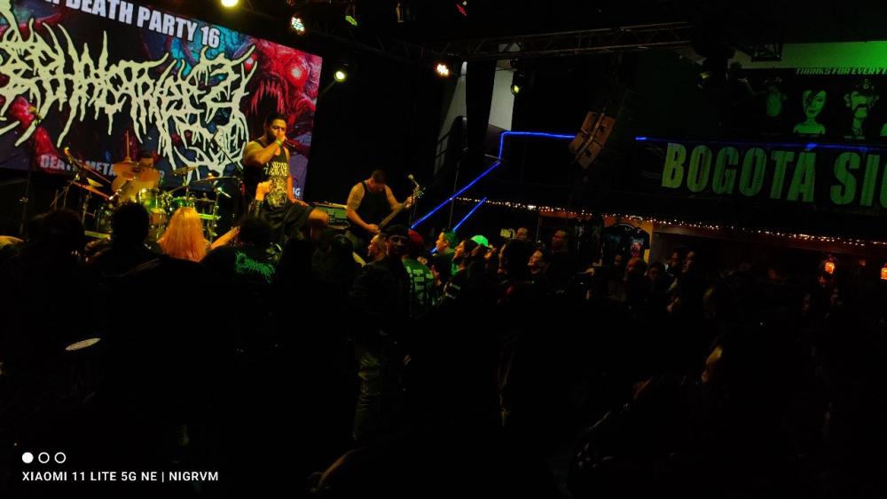 Llegando a la última de las invitadas nacionales, la agrupación más fiestera de la noche, encontrando en su sonido un Slam bastante “bailable” como sé que entenderán los fanáticos a este género, sin embargo logrando aún encontrarse dentro del grindcore, entre otras, por la máscara de su bajista y por la actitud del vocalista quien se ubicó en medio de su propia fiesta desde el primer segundo del escenario, llegando incluso a interpretar dos veces una de sus más icónicas canciones “MorgueGore” logrando el coro de los asistentes en esas dos ejecuciones. Salió de ambulancia: Sí. Todos lo hicimos. Brutal energía de parte de todos ya en expectativa de Cephalotripsy. Memorable también la aparición de Jeffersom Susa, uno de los intérpretes de la también agrupación Bogotana Glutaric.
