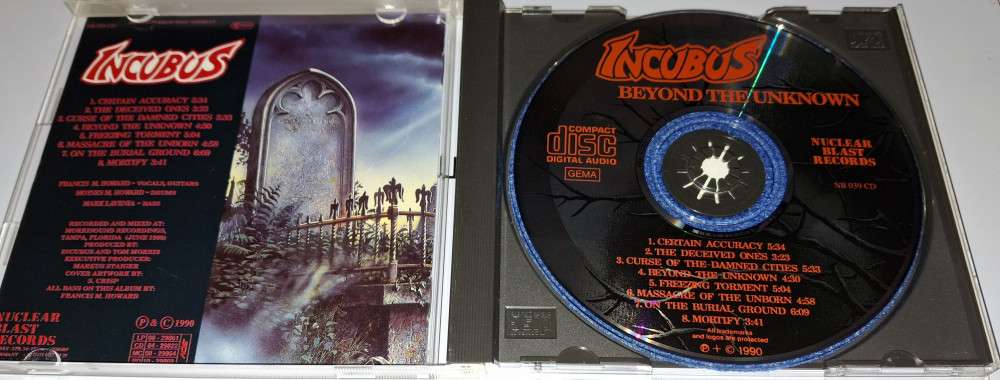 Incubus - Beyond the Unknown - 1990 (Nuclear Blast Records)Recuerdo cuando la explosión alternativa apareció en el mundo y todos mencionaban Incubus como una gran propuesta del estilo, y daba curiosidad que clase de banda era o si eran los desaparecidos Incubus Death Metal de los 80s, y siendo por ese motivo que me adentré en la música de ese nombre, pero el resultado fue otra banda que solo tenía el nombre y era una banda que pertenecía más a ese movimiento alternativo o como le lograron decir New Metal y por obvias razones no entro de los parlantes mucho tiempo, porque yo recordaba aquel Incubus rudo y sucio con este tremendo disco en mención “Beyond the Unknown” (1990) que era mucho más Death Metal que el primero, e inclusive se podía decir que eran más Death Metal que los mismos Possessed, quienes jamás hicieron Death Metal, pero la prensa estadounidense lo ve de otra manera; entonces, este segundo disco de los estadounidense fue tremendo en su momento y mucho más violento dentro de los 37 minutos, pero luego de muchos años la idea cristiana sobresalió dentro de un margen lirico de muerte, maldad y violencia.