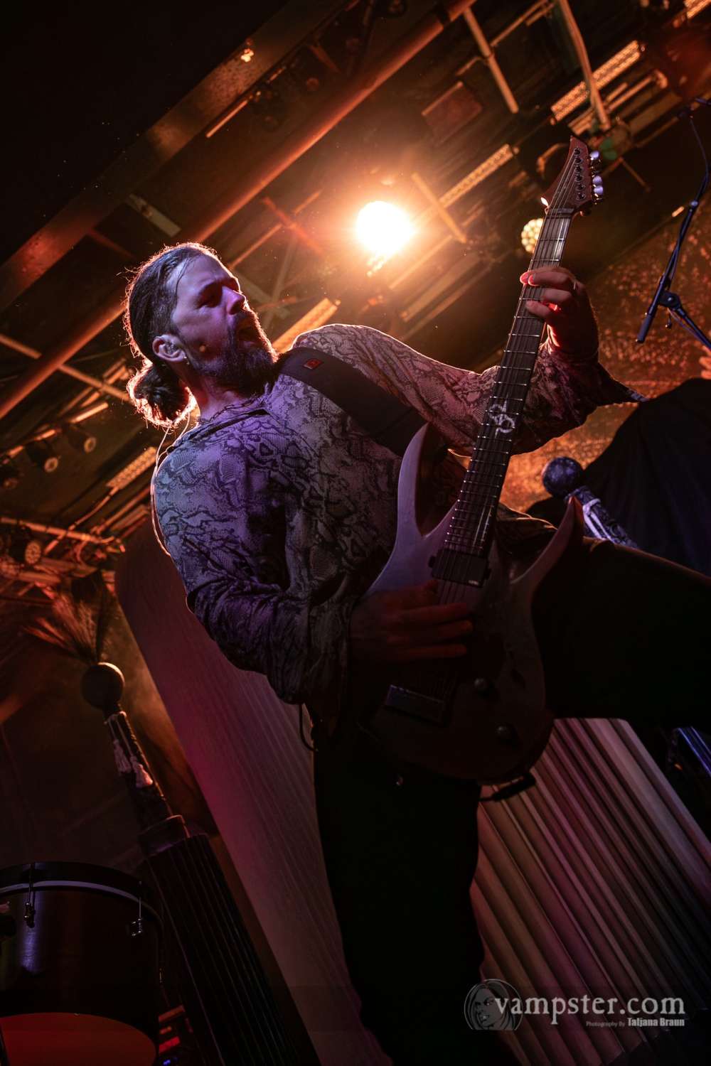 Equilibrium: Cada vez que cambias de vocalista, a veces es difícil entender los siguientes pasos, porque la mayoría prefiere solo una parte de la banda o su historia, y a la gente no le gustan las nuevas canciones. Ya sabes, ya sabes sobre este tema. Sí, sí, sí, es muy cierto. Y especialmente para Equilibrium, ahora tenemos a nuestro tercer y, con suerte, último cantante, y cada uno era muy diferente. El primero era muy chillón, muy black metal, y el segundo era más gutural, más profundo, más death metal. Y Fabian es capaz de hacer tanto temas más profundos como más agudos. Además, tiene fuertes influencias del metal moderno, como elementos del metalcore. Y lo interesante es que, con él en este álbum, pudimos experimentar muchísimo. Y pudimos descubrir mucho. Así que pudimos probar voces profundas, voces agudas, como gritos metalcore, pero también voces limpias. Lo descubrimos durante el proceso: «Oye, probemos algo limpio». Y sonaba bastante bien. Así que también exploramos un poco en esa dirección. Él aporta mucho colorido. Y también está muy interesado en descubrir su propia voz. Tiene un estudio en casa, donde puede grabarse y nosotros podemos probar cosas y enviarlas. Así que es una experiencia muy agradable trabajar con él en las canciones. Y sí, a nosotros nos da la opción de probar diferentes tonos con su voz, lo cual también encaja con nuestra música. Y a la hora de tocar las canciones antiguas en vivo, lo hace con cierto respeto. Por ejemplo, en la última gira, tocamos una canción muy antigua y él se inclinó un poco hacia un tono más agudo y chillón. Así que no cambiamos totalmente las canciones antiguas. Básicamente, las tratamos con respeto porque sabemos que a la gente le gustaría escucharlas así. Así que sí, es una mezcla muy agradable e interesante: mantener las canciones antiguas tal como están y desarrollarlas para el nuevo material moderno que tenemos ahora.