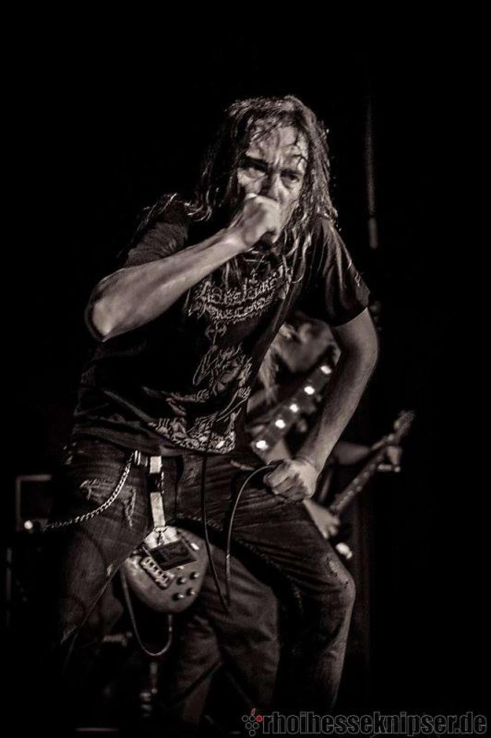 Heads for the Dead: Bueno, con la tecnología actual, es bastante fácil hacerlo funcionar, porque como tengo mi propio estudio, puedo grabar cada parte sin quitarle algunas a quienes necesitan ensayar. Así, por ejemplo, podría grabar el álbum completo sin la batería y enviárselo al baterista para que luego ensayara con esas pistas. Y lo mismo sin las voces, sin ciertas partes de guitarra y cosas así. Así que cada uno puede ensayar por su cuenta. Y cuando finalmente llega el momento del concierto, nos reunimos y ensayamos un par de veces en el país de uno de los miembros de la banda. De hecho, hicimos lo mismo con Rotpit. Como tenemos miembros repartidos por Alemania y Suecia, grabé pistas de ensayo para todos. Y cuando nos reunimos, todos estábamos preparados y ensayados. Así que no tuvimos que pasar horas y horas en el local de ensayo. Y todos estaban demasiado preparados. Así que, al final, fue como si hubiéramos estado tocando en el local de ensayo durante años y años.