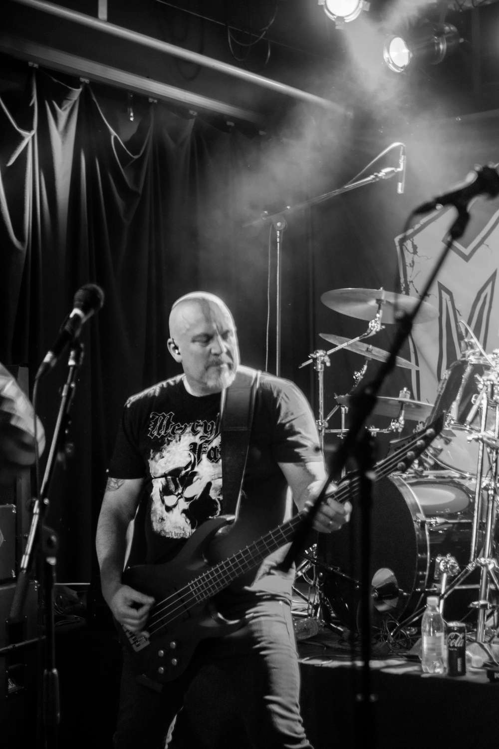Mezzrow: Creo que hay muchas razones para que el Thrash Metal retrocediera. Pero en Suecia, tuvimos una gran ola de death metal en 1990. Y en cierto modo nos ahogamos en ella con Mezzrow. No recibimos mucha atención a principios de los 90. Desafortunadamente, compusimos después de lanzar Then Came the Killing. Tuvimos un año bastante bueno. 1990 fue un buen año para nosotros. Pero luego nos echaron, nos echaron de nuestra discográfica. Y la razón principal fue que hubo muchas razones para ello. Pero el thrash metal estaba en declive. Y muchos de nuestros primeros héroes, como Testament, Exodus y Metallica, bajaron el ritmo. Los asignaron a grandes compañías y sellos discográficos. Algunos escribieron baladas. Pero definitivamente bajaron el ritmo. Y queríamos seguir tocando Thrash, y también algo rápido. Pero no funcionó. Y no recibimos atención. Perdimos el contrato discográfico. Y no conseguimos uno nuevo porque para entonces todos querían fichar a una banda de Death Metal. Así que, como que, ya sabes, perdimos la inspiración. Y esto fue en 1993. Decidimos reunirnos de nuevo o reiniciar la banda en 2021. La razón fue que teníamos una canción en la computadora de nuestro bajista, Connie. Así que Connie y yo participamos en el álbum Then Came the Killing. Para que quede claro, soy miembro original.