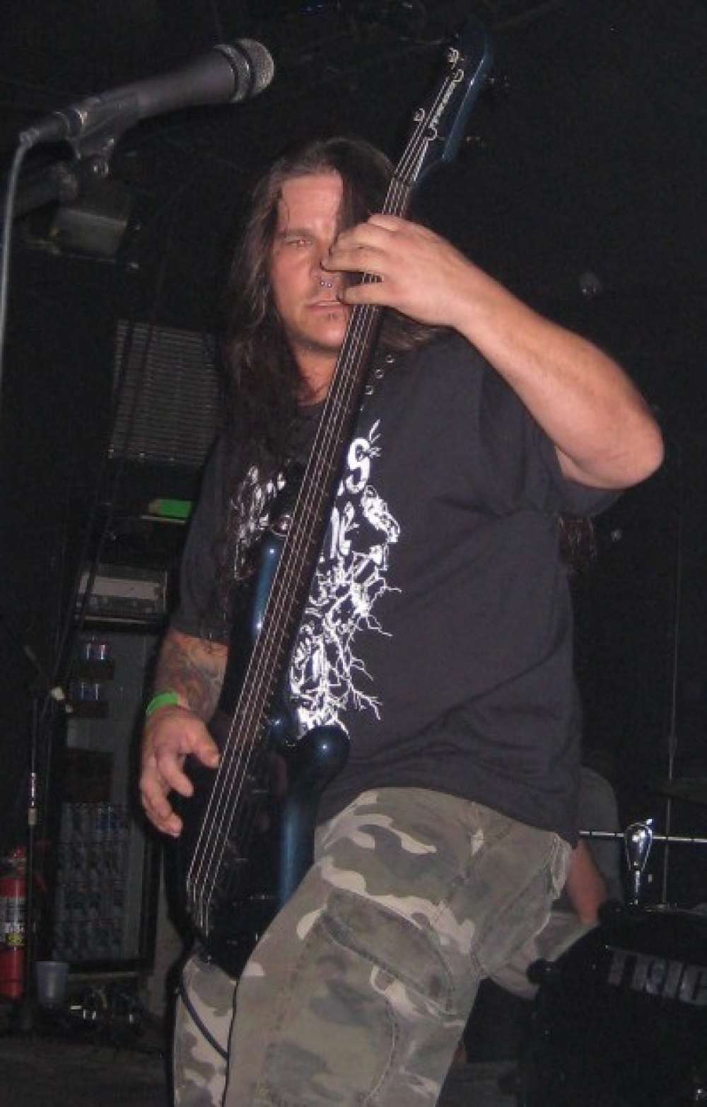 Monstrosity: Bueno, lo principal es componer las partes, no solo seguir las guitarras. Eso es una cosa, ya sabes, terminé tocando el bajo en una banda de versiones por un tiempo y de alguna manera me enseñó, me dio una nueva apreciación por el bajo. Y entonces, como cuando escribí las líneas de bajo para Banished, ya sabes, se trata de hacer partes que no sean solo, como dije, siguiendo las partes de guitarra, realmente tener paradas donde hay como espacio para, ya sabes, espacio para respirar, donde realmente puedes escuchar cuando el bajo se detiene y vuelve, ya sabes, y así como usar ese tipo de cosas como impacto. Ya sabes, por supuesto, ya sabes, Mark Van Erck agregó su estilo a lo que escribí, pero luego Jason, incluso Jason Zhukov de Audio Hammer, él realmente tuvo mucho que ver con el bajo, algunas de las partes de bajo, ya sabes, daba sugerencias y arrojaba ideas. Lo principal, ya sabes, es que muchas veces, en el death metal, e incluso en nuestros primeros álbumes, el bajo simplemente seguía a la guitarra. Y cuando intentas subirle el volumen, solo añades confusión a la mezcla general. Por eso, tener las partes escritas con sus propias melodías y patrones que acompañan a la batería, por así decirlo, hace que destaquen más y te permite subirle el volumen al bajo sin que este simplemente opaque a la guitarra.