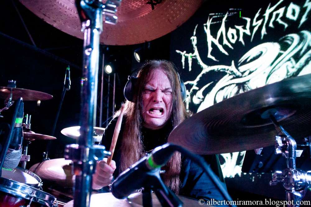 Monstrosity: Quiero decir, hasta ahora. He tenido suerte de no tener ningún problema real, ya sabes, no he tenido ningún problema de espalda del que hablar. Tuve un problema en la muñeca, tuve un problema en la muñeca o en el brazo con algunos tendones hace unos 15 años y fui a un médico y fue porque la forma en que sostenía el ratón o la computadora, la mesa estaba cortando los nervios, por así decirlo y una vez que me dijo eso me di cuenta, ya sabes, y dejé de hacerlo, ya sabes, el problema desapareció. Así que tuve suerte en ese caso. Pero básicamente, ya sabes, mientras físicamente pueda aguantar, ya sabes, ¿sabes quién es Buddy Rich, ¿verdad? El baterista de jazz Buddy Rich. Bien. Sí. Sí, ya sabes, quiero decir, tocó hasta que tuvo casi 80 años, ya sabes, así que tocaba batería física, batería dura, ya sabes, esas cosas, los últimos tiempos y lo que sea, pero hacía una batería loca. Así que solo espero que, ya sabes, mientras siga practicando y los mantenga, ya sabes, mantengo mi forma con mi batería y ya sabes, trato de tocar todos los días, espero poder seguir adelante y mantener la brutalidad.