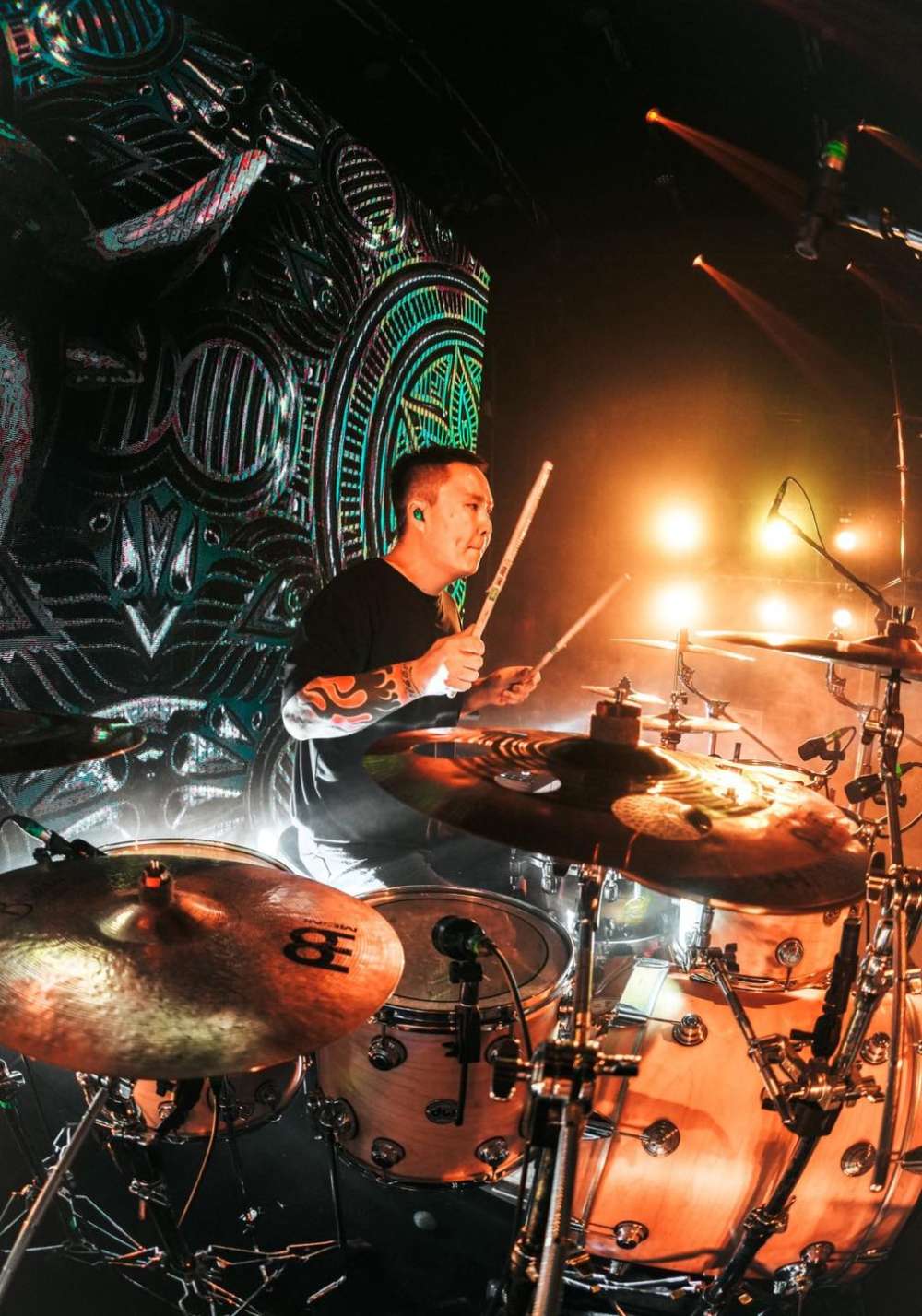 Nine Treasures: Ajá. Sí. Todo depende de si usas o no metrónomo. Para mí, el metrónomo es demasiado consistente. Sí, claro, es muy estable. Pero para mí, la música en vivo es muy fluida, con altibajos y llena de dinámica. Si haces que el tambor suene como una ametralladora de principio a fin, pues... para mí, es un poco aburrido. Sí, para mí, cada golpe de caja debería ser diferente, con más energía. Y sí, valoro mucho que las bandas de hoy en día sigan tocando al estilo clásico. Es más, en vivo.