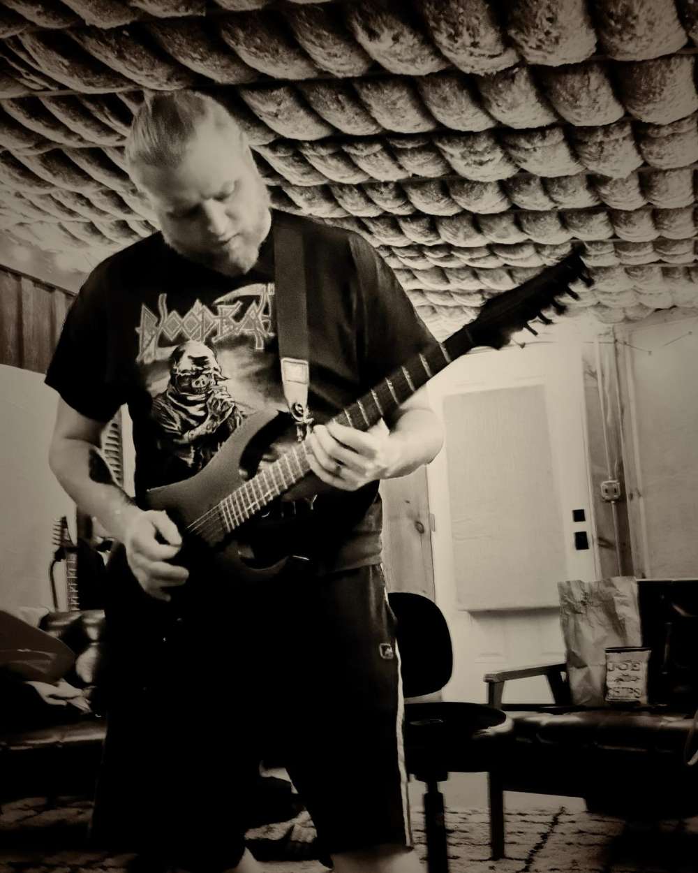 Reeking Aura: Bueno, este álbum solo tiene dos guitarras. El anterior tenía tres guitarras. Ahora, ahora tenemos dos. Así que la claridad fue probablemente un poco más fácil de lograr en este caso porque, en lugar de tres personas, tenemos dos, y eso marca la diferencia. Sí que marca la diferencia porque tenemos dos mentes en lugar de tres. Y luego, ya sabes, incluso si hay la misma cantidad de partes que habrían grabado tres guitarristas, el hecho de que haya dos guitarristas puede hacer que sea un poco más claro porque tienes dos mentes en lugar de tres. Y, ya sabes, ven demasiados cocineros en la cocina, ¿sabes? Así que creo que menos es más en esto en una banda. Y he aprendido porque en mi otra banda, siempre he querido tres guitarras también. Pero no creo que vaya a hacerlo, no creo que vaya a hacerlo porque eso se puede lograr en el estudio.