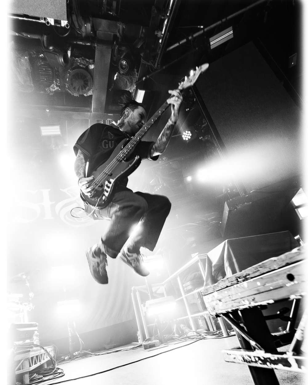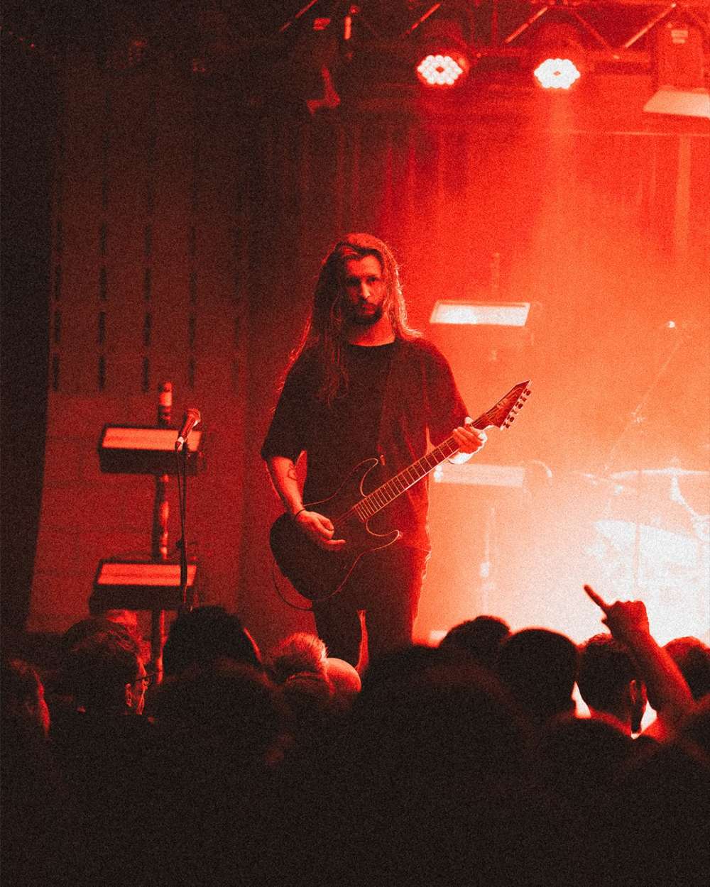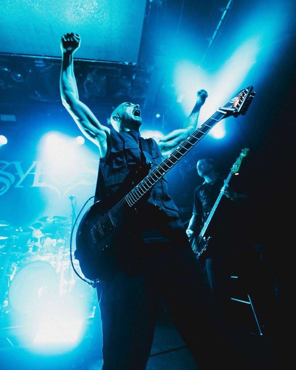Sylosis: Para ser honesto, no diría que tomé nada de Sam ni de su forma de hablar al público. Entre canciones, no podía... solo tenía la batería y la guitarra en el oído, así que no podía oír mucho de lo que hacía. Así que me fijaba en, ya sabes, todos mis cantantes favoritos. Y lo más difícil es poder tocar la guitarra y cantar a la vez. Sabes, tener que practicar canto y tocar la guitarra a la vez es bastante complicado. Pero bueno, en cuanto al líder, en cuanto a cómo interactúa con el público, no se me ocurre quién me inspire. De niño, escuchaba el disco de Pantera en directo todo el día, todos los días. Ese fue el primer disco de Pantera que conseguí. Pero en años más recientes, en cuanto a cómo me veo como líder... Sí, no lo sé. Solo intento descubrir por mí mismo qué es lo que me conviene.