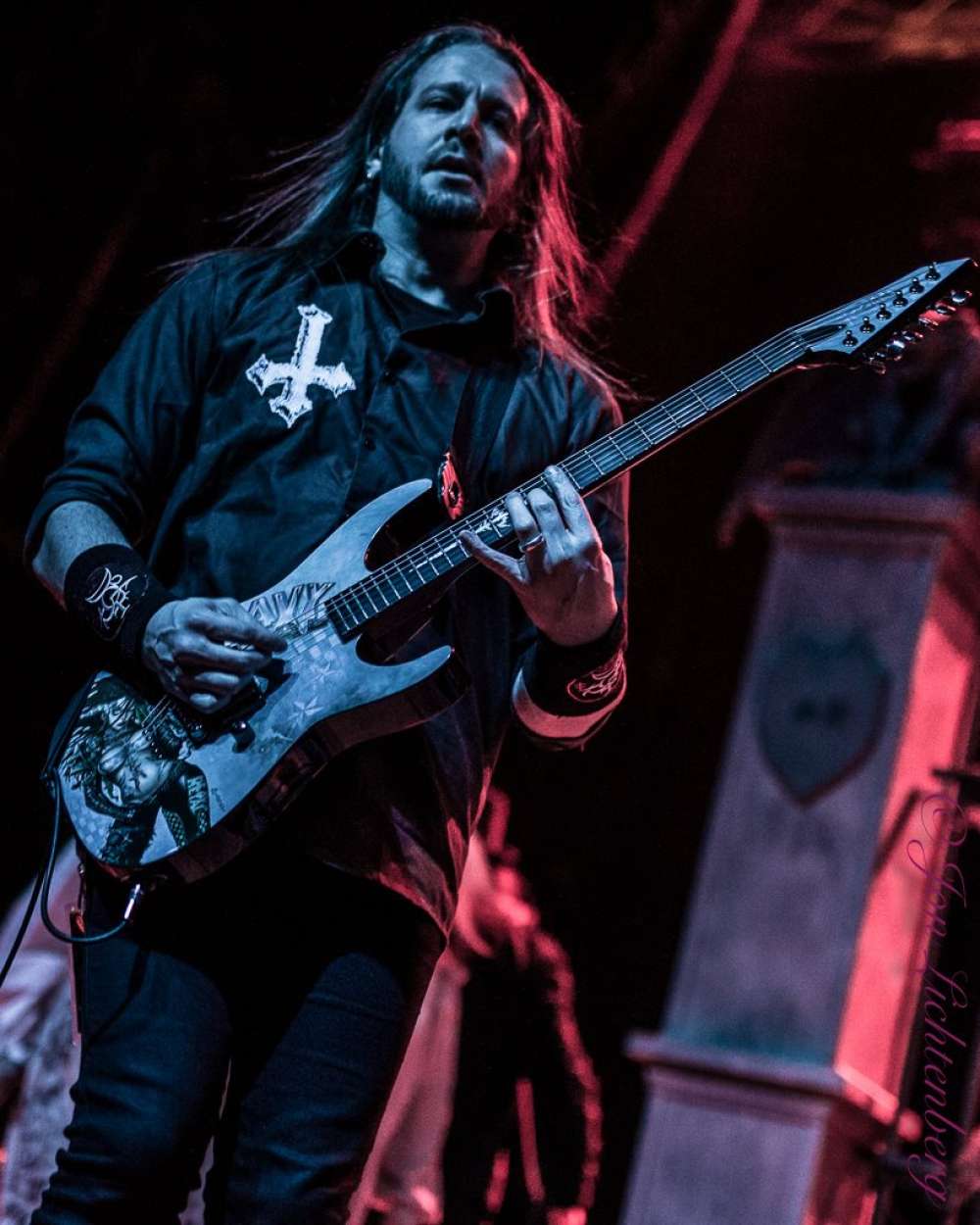 Them: Esa es una respuesta bastante sencilla, porque cuando se fundó la banda, era simplemente una banda tributo. Así que el único miembro que está en la banda ahora mismo es Troy, el cantante. Él fundó la banda en 2008, y antes tocaban con una banda estadounidense, con miembros totalmente diferentes, siendo él el cantante. Y solo ofrecieron conciertos tributo a King Diamond. Eso fue todo. Hicieron todo el espectáculo. O sea, tocaron por todos lados en Estados Unidos. Tenían todo el cementerio y demás en el escenario, e hicieron una versión de King Diamond. Y por eso, la banda se llamaba Them. Y después, a Troy se le ocurrió una idea y simplemente les dijo a los chicos: "Ya no quiero hacer eso. Quiero tener algo propio. Quiero componer mi propia música". Los chicos de la banda estuvieron de acuerdo, pero no pasó nada. Y cuando conocí a Troy, mientras tocaba con mi otra banda, que aún existía, toqué en un festival en Estados Unidos y allí lo conocí. Fue una coincidencia. Lo conocí en Nueva York, hablamos y me dijo: «Oye, tengo una banda llamada Them y tocamos en algunos conciertos de King Diamond, pero ahora queremos componer nuestra propia música». Y le dije: «Genial, qué interesante. Avísame si hay novedades». Y luego no supe nada más de él. Un año después, me contactó y me dijo: "Bueno, los chicos de la banda no hacen nada. No les interesa". ¿Te interesaría componer música original conmigo? Y así fue como empezó la banda, tal como la conoces ahora. Eso significa que los primeros seis o siete años fueron algo totalmente distinto. Era una banda con otros miembros que tocaba en conciertos tributo a King Diamond. Después de eso, me uní, traje conmigo a nuestro teclista y encontramos otro guitarrista de Chicago y otro baterista. Así que la banda, tal como la conocen, existe desde 2015, 2014 o 2015. Por esa época, compuse el primer álbum con Troy y en ese entonces pensábamos que sería algo puntual, un solo álbum y ya. Pero cuando grabamos el álbum, solo lanzamos un sencillo y entonces las discográficas se interesaron y nos ofrecieron ir de gira con Halloween por Estados Unidos y Canadá. Así que hicimos ese sencillo y luego todo fue rodado. Y así fue como la banda, tal como la conoces ahora, comenzó a existir. Empezamos a escribir una segunda y una tercera, pero los orígenes del grupo son totalmente distintos.