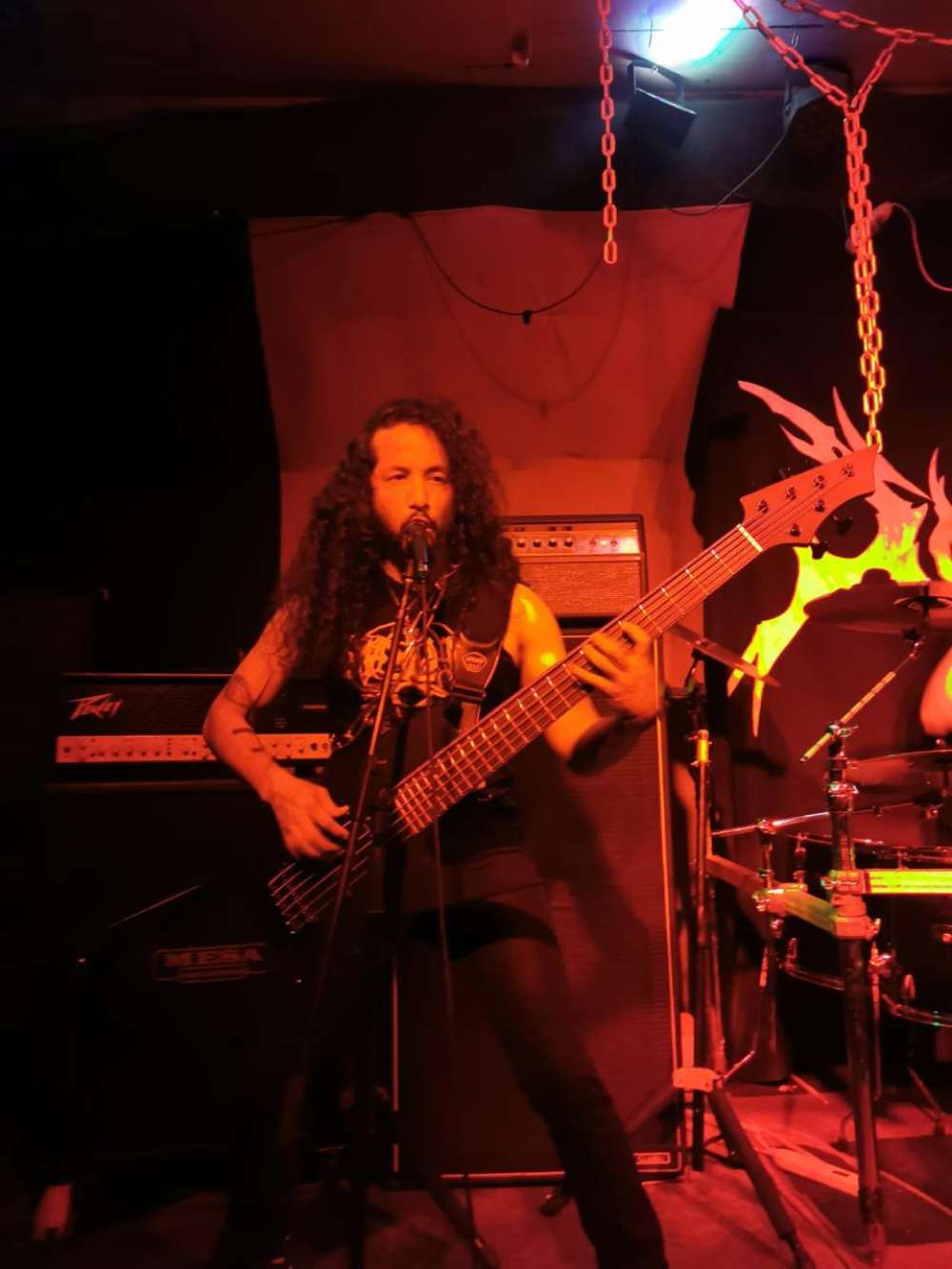 José: En lo personal, por ejemplo, yo en la primera banda, me venía escuchando cuando era, no sé, niño, ACDC, Guns N' Roses, que sonaba en la radio. Y, de repente, escucho la primera banda que escucho porque le pregunto a un primo, he escuchado por ahí unas cuestiones con cartas culturales, pero no sabía lo que era. Y me pasan un cassette de Deicide. Y yo quedo así, digo, esta es la banda que quiero escuchar el resto de mi vida. Y hasta el día de hoy sigo escuchándolo. He tenido la suerte de verlo varias veces. Trabajar con ellos hace unos meses atrás. Así que ya, ¡felices! ¿Qué más vamos a hacer? Claro, dentro de todo eso, creo que igual también el Suffocation es una banda importante dentro del estilo. Acá, igual, con la escena nacional, disfrutamos igual hartas cosas que también nos llaman la atención y tratamos de hacer como una marca igual.