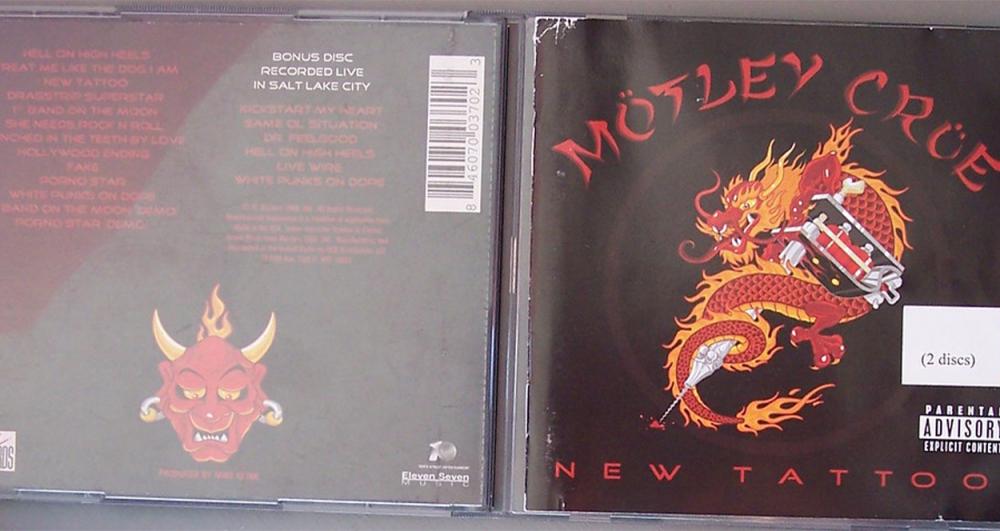 Mötley Crüe - New Tattoo - 2000 (Mötley Records)Para este disco, la banda se dio cuenta que no bastaba con la voz de Vince, faltaba el hard rock party que siempre hacían, y lo hacían bien, así es que intentaron volver a su clásico sonido parrandero, y así tenemos un mejor disco que "Generation Swine", por que al menos sabes que es Mötley Crüe, sin embargo, a pesar de que el disco tiene destacados momentos en "Hell on High Heels", "Treat Me like the Dog That I Am", "1st Band on the Moon", entre otras, no es suficiente, no lograron superarse a sí mismos de su época dorada, así mismo el momento musical a nivel mundial estaba en otras cosas, como para fijarse en una banda de viejitos drogadictos, tratando de hacer su mejor esfuerzo.
