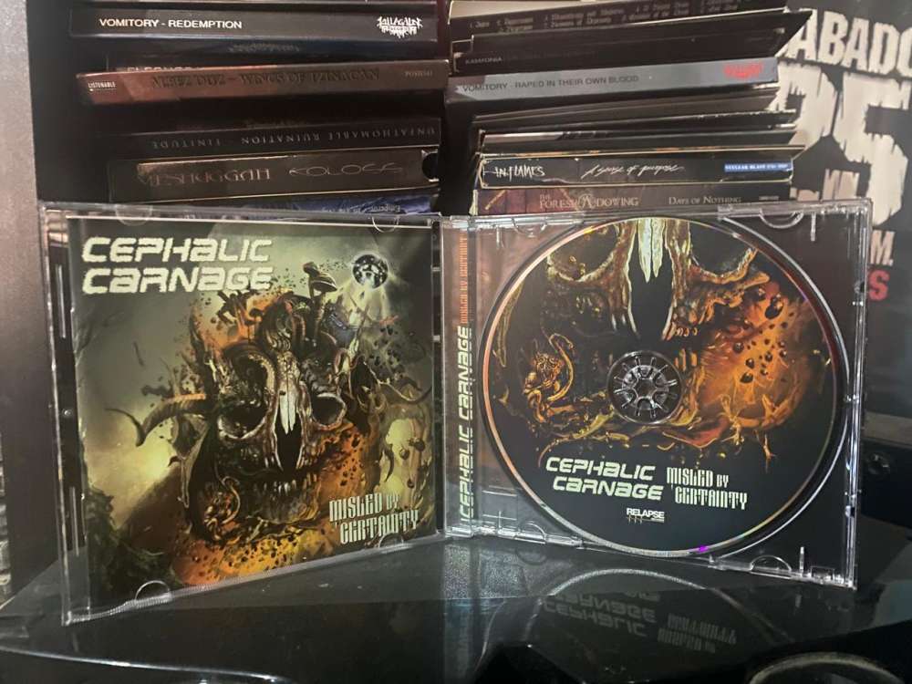 Cephalic Carnage - Misled by Certainty - 2010 (Relapse Records)Último disco de la banda a la fecha, y este disco es tremendo y tienen muchas cosas que relucir dentro de su grabación e inclusive con una portada mucho más asesina que del pasado, pero curiosamente fue de aquellos discos que no termina de convencer, y los 53 minutos se siente un poco lejanos a lo que banda siempre presento, y claro siempre hay canciones como la tremenda “Ohrwum”, la cual demostró que la banda tenia ese talento extremo, groove y raro, porque esos lados medios extraños y jazzeros te recuerdan épocas de los 90s en su música, y claro hay otra canciones como “Raped by An Orb” con un las más dosificado, y en general el disco se siente de esta manera, más calmado y ya no ese concepto más alocado de sus pasados discos que llegaron a hacer más técnicos o progresivos, y se entiende que mejoraron su manera de componer, pero ya no tenia ese detalle distinguible del Cephalic Carnage de siempre, apegándose mucho a lo que estaba pasando en el Death Metal de aquellos años.