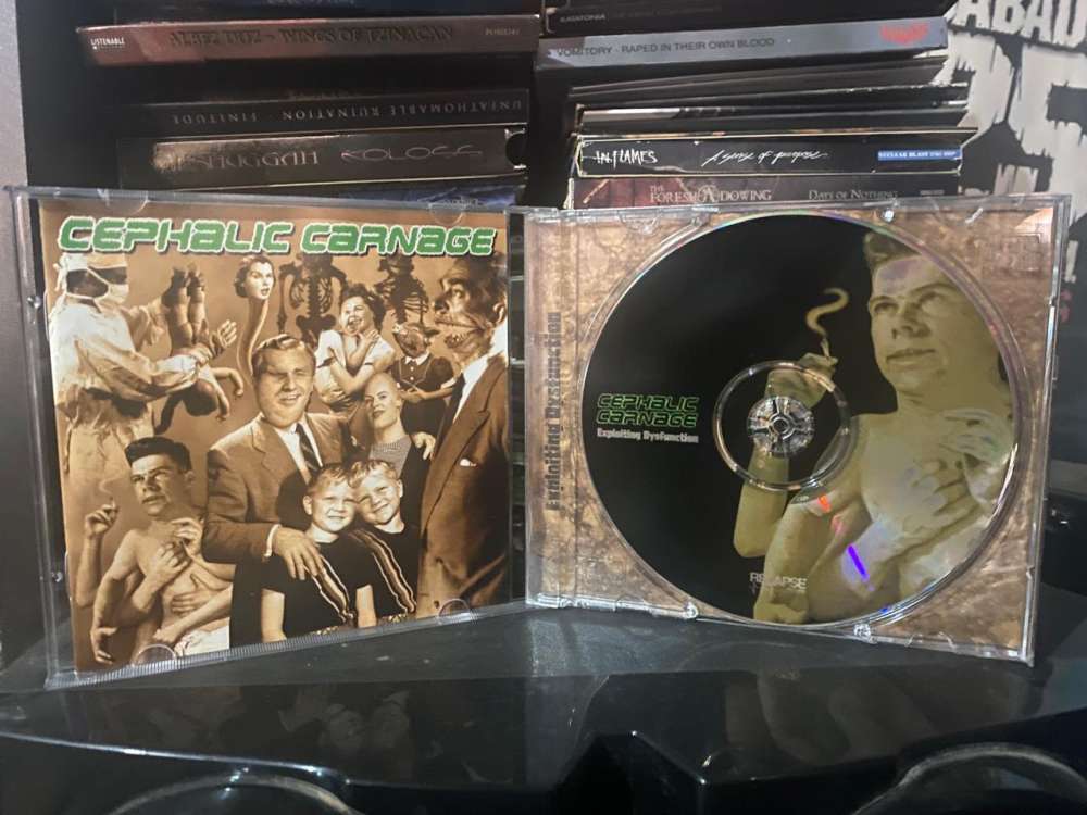 Cephalic Carnage - Exploiting Dysfunction - 2000 (Relapse Records)Segundo album de la banda, y que manera de dar el paso al siguiente camino, cuando vi la portada, en primera instancia pensé que ellos se habían ido por el lado más Hardcore o más mainstream, pero no canciones como “Rehab”, “Gracias” o “Cryptosporidium”, especialmente la tercer es un destape completo de tecnicismo y con ese lado Grindcore de siempre, pero con una masa más personalizada y con algo que no lo escuchabas en otras bandas, mezclando voces agudas, graves e internas, y decías… que esta pasando acá, y si, estoy seguro que muchos se asustaron por la portada, pero al final, existía mucha relación de lo que ibas a encontrar, pero como siempre, este disco estaba en pleno desarrollo de la música de la banda y se vendrían mejores álbumes, aunque este sea una tremenda descarga del estilo.