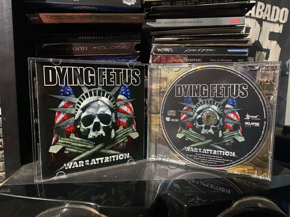 Dying Fetus - War of Attrition - 2007 (Relapse Records)En su momento y hasta ahora es uno de los discos que tiene más gente que lo rechaza, y la verdad jamás lo entenderé, quizá por amor al pasado o porque la banda presiono mucho más lo que hicieron en el 2000, la cosa es que por más que este disco sea abucheado por conocidos y desconocidos, fue una excelente presentación de la nueva alineación de la banda, que estaba comenzando a solidificar el sonido más acelerado y brutal de la banda, donde John le piso el juanete a Sean para cantar al estilod e Jason y seguir con la marca de casa del estilo, y así fue, canciones como la inicial “Homicidal Retribution” son tremendas y muy esperadas en vivo, porque tiene el pasado y lo nuevo de la banda, y Sean sube el nivel como bajista en la banda, porque encuentra más espacios para denotar el instrumento y se siente el siguiente paso, luego otra de tremenda y que sigue dentro de los parámetros de la banda es “Raping the System”, la cual desde el nombre de canción sabes que es una canción de Dying Fetus, otra mencionable es la siguiente “Unadulterated Hatred”, es inicio y luego el bajo al estilo de las viejas épocas de la banda, pues todo un placer escucharlo.
