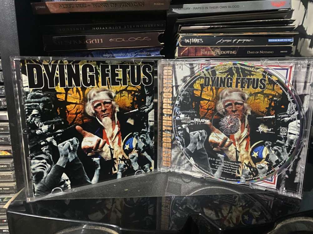 Dying Fetus - Destroy the Opposition - 2000 (Relapse Records)Disco que estuvo durante la época dorada y fusión de Jason y John, de aquellos que puso granito para muchas bandas de los 2010s para adelante hicieran más piruetas con la guitarra, y no es para menos “Destroy the Opposition” (2000) es un disco brutal y con todas las herramientas de la banda, un disco a tomar en cuenta dentro de su carrera, con una portada completamente política y social, es de aquellos discos que cuando salieron uno lo escucha de pies a cabeza y siguen sonando impresionantes aunque pasen los años, canciones como “Praise the Lord (Opium of the Masses)” donde hacen gala de estos detalles super técnicos en guitarra como John Gallagher y Sparky Voyles, y demuestran porque ahora son referentes para muchos guitarristas del mundo, o sino la misma “Pissing in the Mainstream” que empieza con virtuosismo inmenso, Kevin Talley otro demonio en la batería y que sigue todos los patrones de la banda y quien puede ser considera como un baterista de mucha personalidad en el mundo Death Metal.