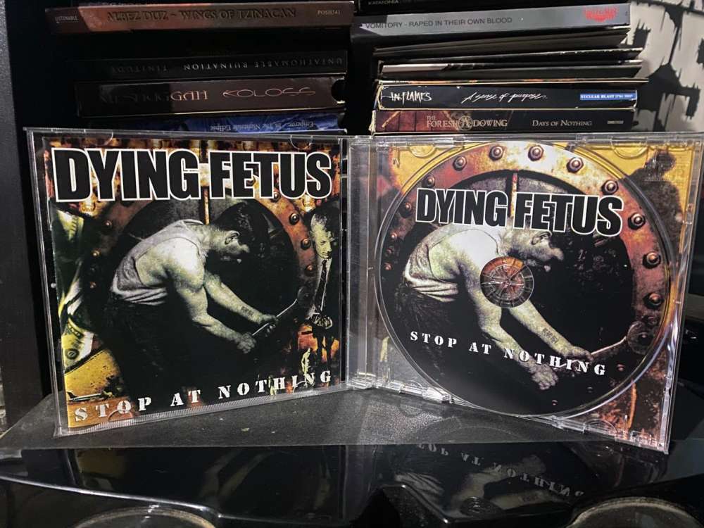 Dying Fetus - Stop at Nothing - 2003 (Relapse Records)Durante aquellos años de inicios de los 2000s y dentro de la carrera de Dying Fetus, este fue uno de los discos más estaba esperando y que gracias al pool de ventas que se tenia en la web desde el 2002, este disco estuvo algunos meses dentro de lo más vendido de su años, y no era poco, debido a que la banda vino comentadísima desde su segundo álbum, porque fue de aquellos que se pueden considerar en nuestros tiempos clásicos de los 90s y luego el siguiente fue uno de los patrones más sobresalientes para las banda de Technical Death Metal del 2010 para adelante, entonces, cuando lo escuche en su momento, fue un disco que me voló la cabeza, pero a pesar de ser uno de mis favoritos de la banda, se siente como un disco que estaba pasando por una transición de integrantes, y por única vez en la historia eran 5 músicos, ya que aquellos años Sean Beasley todavía no cantaba, y necesitaban alguien que se parecía al estilo y marca de Jason Netherton, por eso este disco entra en esta posición, porque se siente esa transición de músicos, pero mucho mejor que los últimos 3 discos de la banda.