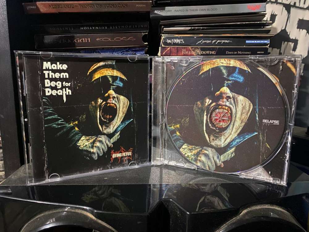 Dying Fetus - Make Them Beg for Death - 2023 (Relapse Records)Último disco de la banda, y un disco que nuevamente repite lo de “Reign Supreme” (2012), siendo un disco muy plano en muchos momentos, e inclusive lo escuchas muchas y el disco sobresale mucho más que el mencionado, por lo que entra en esta posición, debido a que solo por pocas canciones como “When the Trend Ends” o “Undulating Carnage” sobresale el disco de manera genial, y este disco bebe mucho más de su disco del 2003 “Stop at Nothing”, lo cual un poco más los escalones para este disco, pero si lo comparamos con otros discos del pasado de la banda, pues tenemos un disco que esta conforme donde se encuentra la banda y saben que no se pueden salir un milímetro de estilo personal, algo que juega en su contra, pero al mismo les da credibilidad de ser una banda única en el mundo y con muchas copias detrás de ellos.