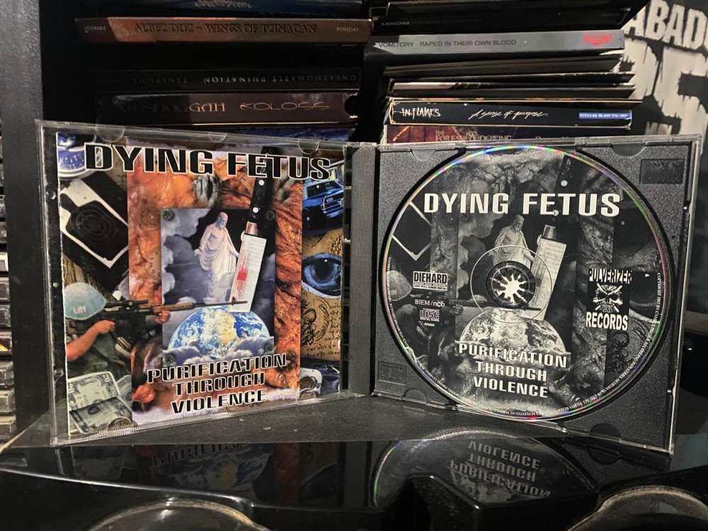 Dying Fetus - Purification Through Violence - 1996 (Pulverizer Records)Primer disco de esta maquina acelerada, donde recuerdo en algunos comentarios gente que vivió este disco en su momento que odiaban este disco por ser muy groove o muy hardcore por momentos, y deacuerdo a la pasada conversación que tuve Jason Netherton, pues el menciona que siempre tuvieron esas raíces y querían hacerlo de esa manera; pero pasaron los años y esas mismas personas ahora dicen que este el mejor disco de la banda, lo cual es una tontería, porque este a pesar de ser el inicio de la banda y tener un aspecto de mezclas primario en lo que iba a pasar después, es un disco incompleto en su carrera, donde la grabación en estudio es precaria, se siente las ideas que estaban uniéndose, por lo que encaja en este lugar por muchas cosas que aun estaban en desarrollo.