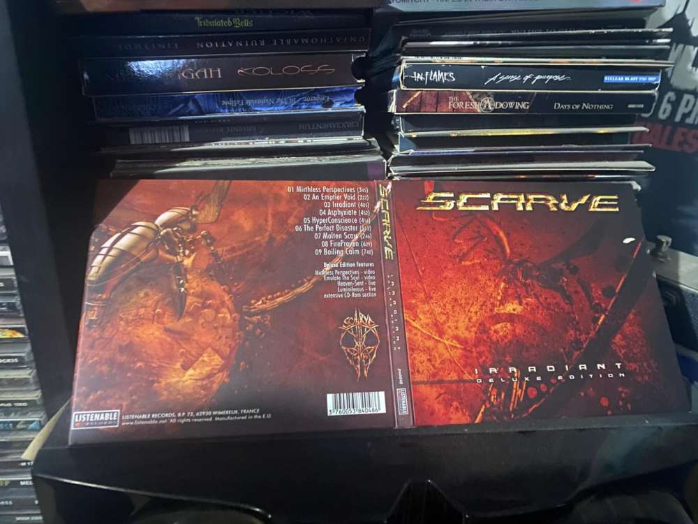 Recuerdo que a inicios y mediados de los 2000 muchas bandas que querían salir del molde tradicional de lo que paso en los 90 estaba apareciendo en el mundo metalero, y dentro de esos nombres teníamos a Periphery, Textures, Tesseract, Sybreed y a Scarve, bandas que tenian algunas dosis de la pasada década, pero tenian una ventaja máxima, los estudios metaleros habían mejorado y el sonido era cada vez mejor para grabar, pero no al grado de tener todo editado y plano que no ya distingues nada como en nuestros tiempos, sino en el balance adecuado en aquellos años, y a ello el talento de músicos cada vez más técnicos afloraba en el mundo, entonces, esta banda francesa llamada Scarve llamó la atención de Listenable Records, quienes junto a Prosthetic Records fueron sellos que estaban en pro de las nuevas tendencias dentro del mundo metalero y no tenian nada que ver con la plaga alternativa o nu, new metal que salió aquellos años por todo lado, y fue así que Scarve comenzó a llamar la atención con sus dos primeros álbum hasta que llegó este “Irradiant” (2004), disco que en su momento fue mucha descarga extrema y con una versión muy distinta a lo que estaba pasando, más industrial, técnicos al máximo y con mucho por ofrecer, y fue de aquellos amores de verano que inmediatamente fue para decir, dame dos copias.
